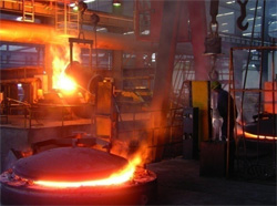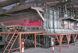 ●工藝簡要:精選的鐵礦石經(jīng)過高爐冶煉,制備出球墨鑄鐵管生產(chǎn)所必需的鐵水。泫氏鑄管采用高爐-中頻爐短流程連鑄工藝、高爐廢氣再利用(球管退火)、節(jié)省二次化鐵的能耗、降低了生產(chǎn)成本、保證生產(chǎn)節(jié)奏的連續(xù)。