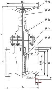 鑄鐵閘閥主要外形尺寸及重量